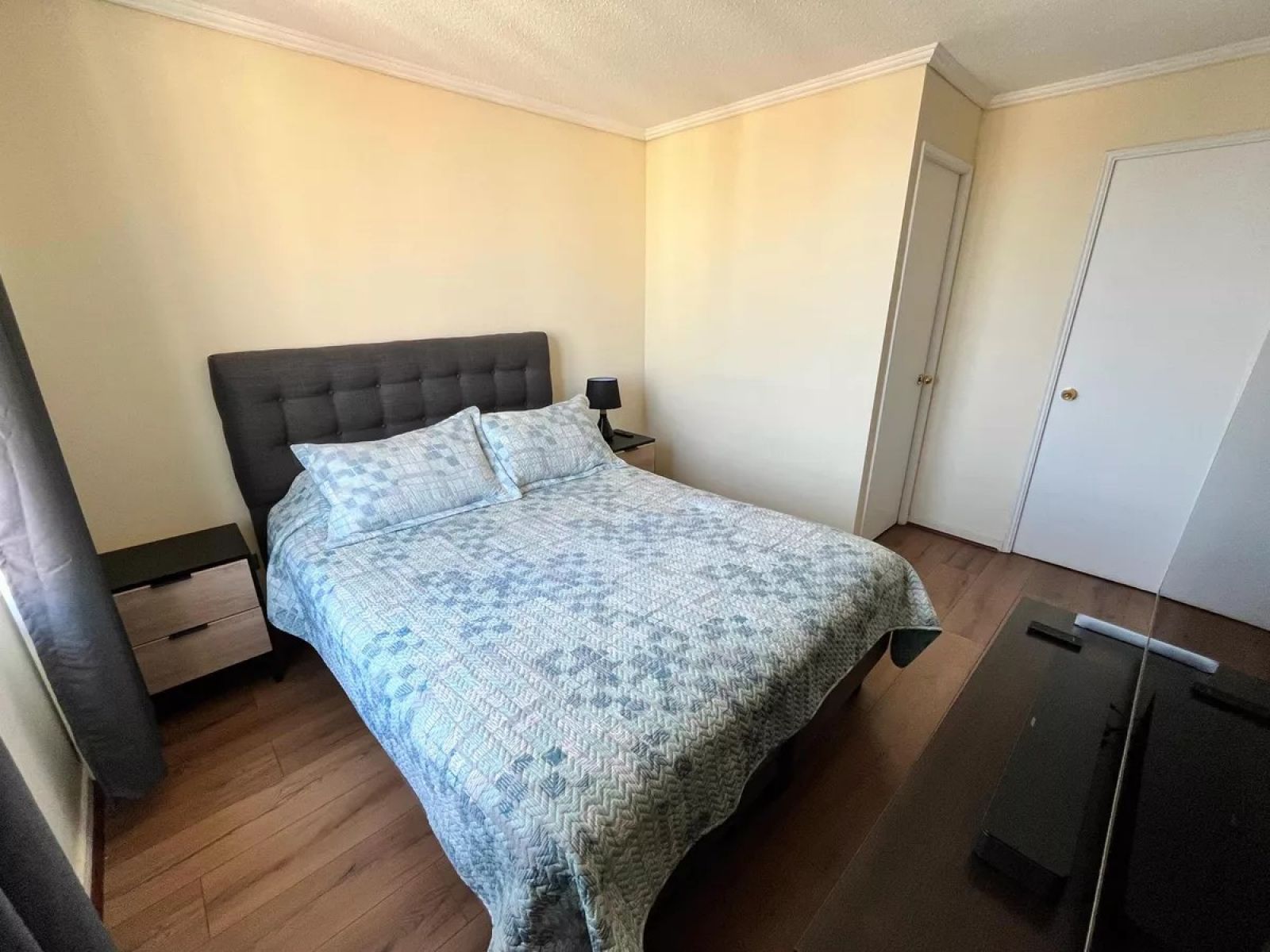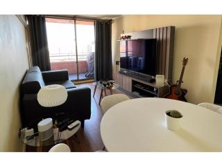 Oportunidad de inversión. Cómodo departamento ubicado en Condominio El Parque, emplazado en Gran Avenida 4310, comuna de San Miguel, sector de alta plusvalía, excelente conectividad, ubicado en piso 17. Cuenta con dos habitaciones y dos baños (la principal con baño en suite), cocina amoblada y equipada, logia, living comedor, terraza, estacionamiento, bodega en subterráneo. Barrio residencial, con áreas verdes, cercano a colegios, bancos, supermercados, cafés y restaurantes, a pasos de las estaciones de metro Lo Vial y San Miguel de la Línea 2. Muy buena conectividad con autopistas. Cuenta con conserjería las 24 horas, cámaras de seguridad, estacionamiento de visitas, piscina, juegos para niños, áreas verdes, quincho, pérgola, sala multiuso y gimnasio. Gastos comunes $80.000. Contribuciones $30.000 aproximadamente