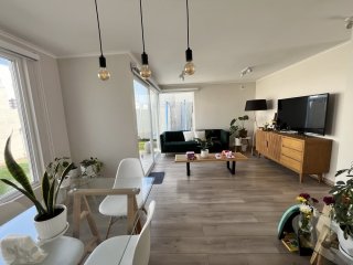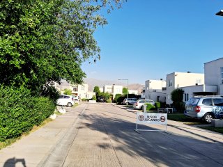 Casa mediterránea ubicada en Condominio Borde Blanco (modelo Santa Ana). Cerca de colegios, supermercados, strip center, etc. Muy buena conectividad con Autopista Los Libertadores. El condominio cuenta con acceso controlado 24/7, áreas verdes y estacionamientos de visitas. Distribución Primer nivel: acceso, baño de visitas, living y comedor, salida a terraza, cocina completamente equipada, logia amplia. Habitación principal con baño en suite. Segundo nivel: tres habitaciones, sala de estar con balcón, un baño completo. Detalles: ventanas termopanel, aire acondicionado en primer y segundo nivel, jardín formado, estacionamiento para dos vehículos. Gastos comunes: $75.000. Requisitos de arriendo: últimas tres liquidaciones de sueldo, certificado cotizaciones AFP, informe Dicom o similar. Mismos requisitos para el aval. Un mes de garantía, mes de arriendo y comisión de corretaje (medio mes de arriendo). Ingresos de arrendatario y aval deben ser al menos tres veces el valor del arriendo.