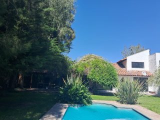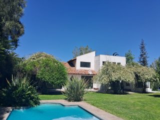 Amplia casa ubicada en Condominio Las Campiñas, a cinco minutos de Av. Chicureo y con buen acceso a Autopista Los Libertadores. El condominio cuenta con acceso controlado 24/7, fibra óptica, plaza con juegos infantiles. Gastos comunes $200.000 con agua incluida. Disponibilidad inmediata. Distribución: Primer piso: hall de acceso, baño de visitas con ducha, cocina amplia, loggia, habitación y baño de servicio. Living y comedor separados. Habitación principal con baño en suite y walking closet, dos habitaciones de buen tamaño y un baño completo. Segundo piso: amplia sala de estar con espacio para escritorio. Exterior: jardín formado con árboles crecidos, piscina, sector de parrilla, portón automático, estacionamiento techado para dos vehículos y varios mas sin techar. Requisitos de arriendo: últimas tres liquidaciones de sueldo, certificado cotizaciones AFP, informe Dicom o similar. Mismos requisitos para el aval. Un mes de garantía, mes de arriendo y comisión de corretaje (medio mes de arriendo).