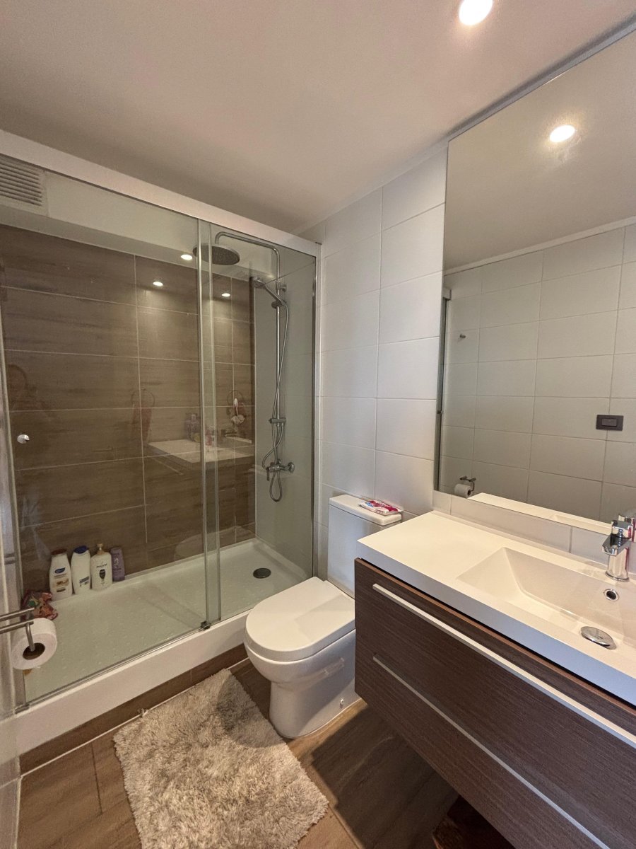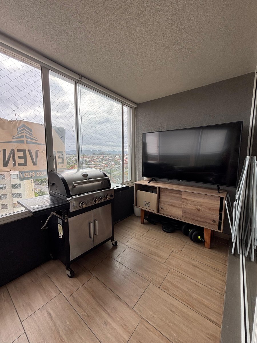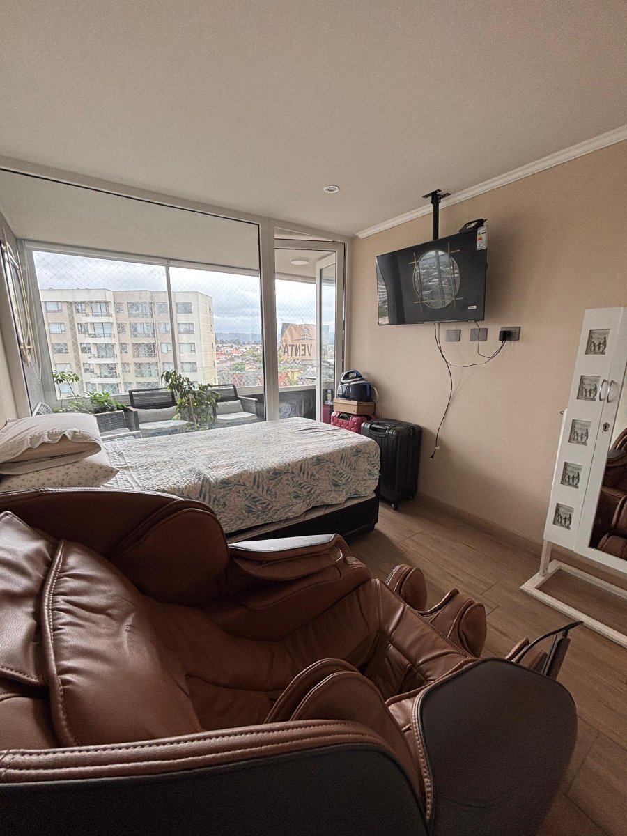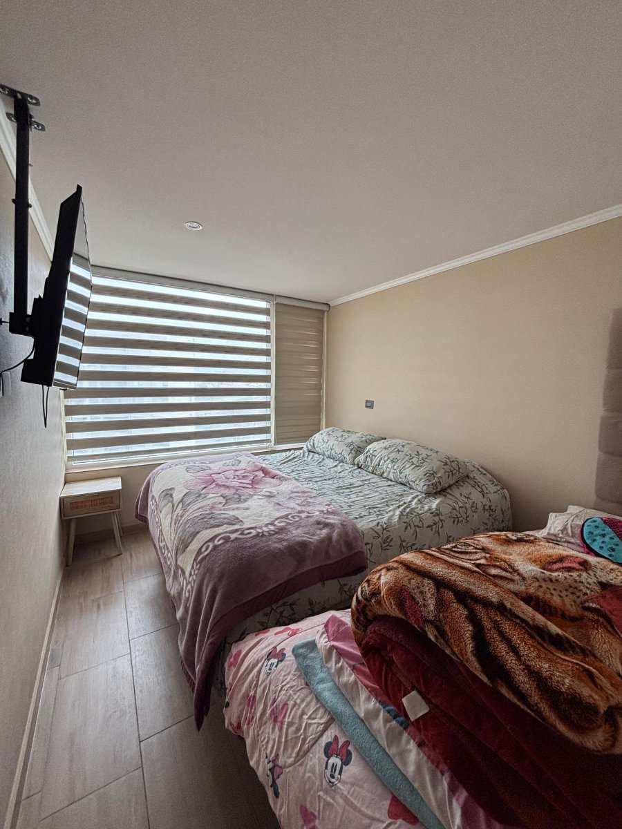 Excelente departamento en Edificio Altos de San Andrés, ubicado en el barrio de Lomas de San Andrés, zona residencial, cerca de supermercados, colegios, mall, clínicas y todo tipo de servicios. Cuenta con dos habitaciones y dos baños completos, (la principal en suite y con walking closet), living y comedor, amplia terraza cerrada con malla de seguridad y termopanel, cocina equipada, con conexión a lavavajillas y amplio espacio para refrigerador side by side. Departamento con amplios closets y espacios para almacenamiento. Vista oriente, sol de mañana. Incluye: dos calefactores eléctricos de bajo consumo, dos estacionamientos subterráneos y una bodega, cortinas y lámparas. El edificio cuenta con con conserjería 24/7, CCTV, quinchos, 2 salones lounge, juegos infantiles, gimnasio full equipado, bicicleteros, amplias áreas verdes y juegos infantiles. Gastos comunes $75.000 más consumo de agua caliente.