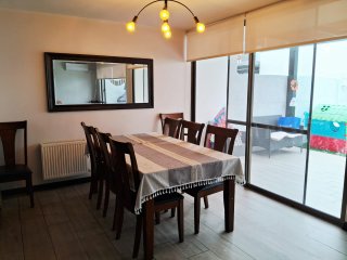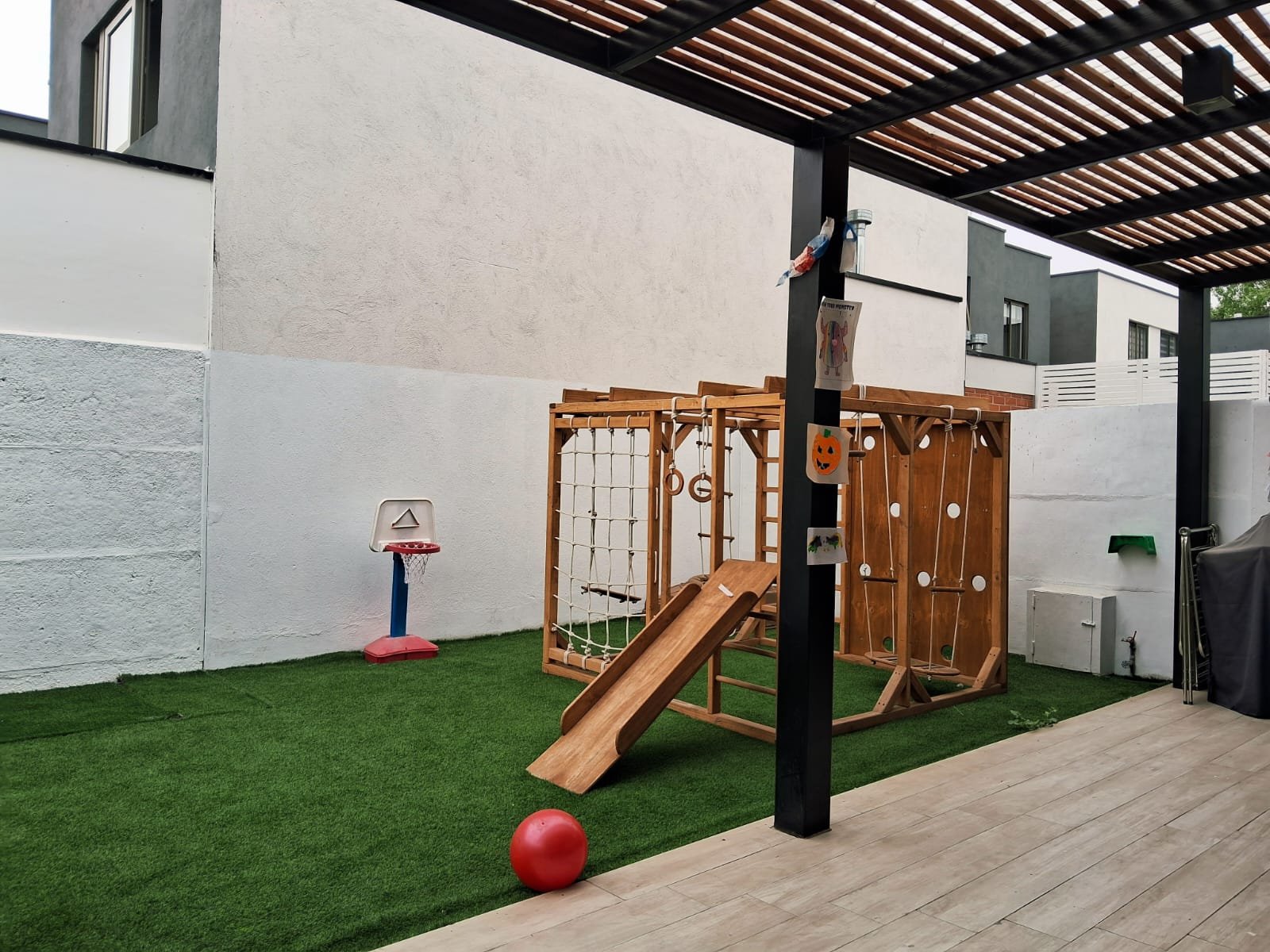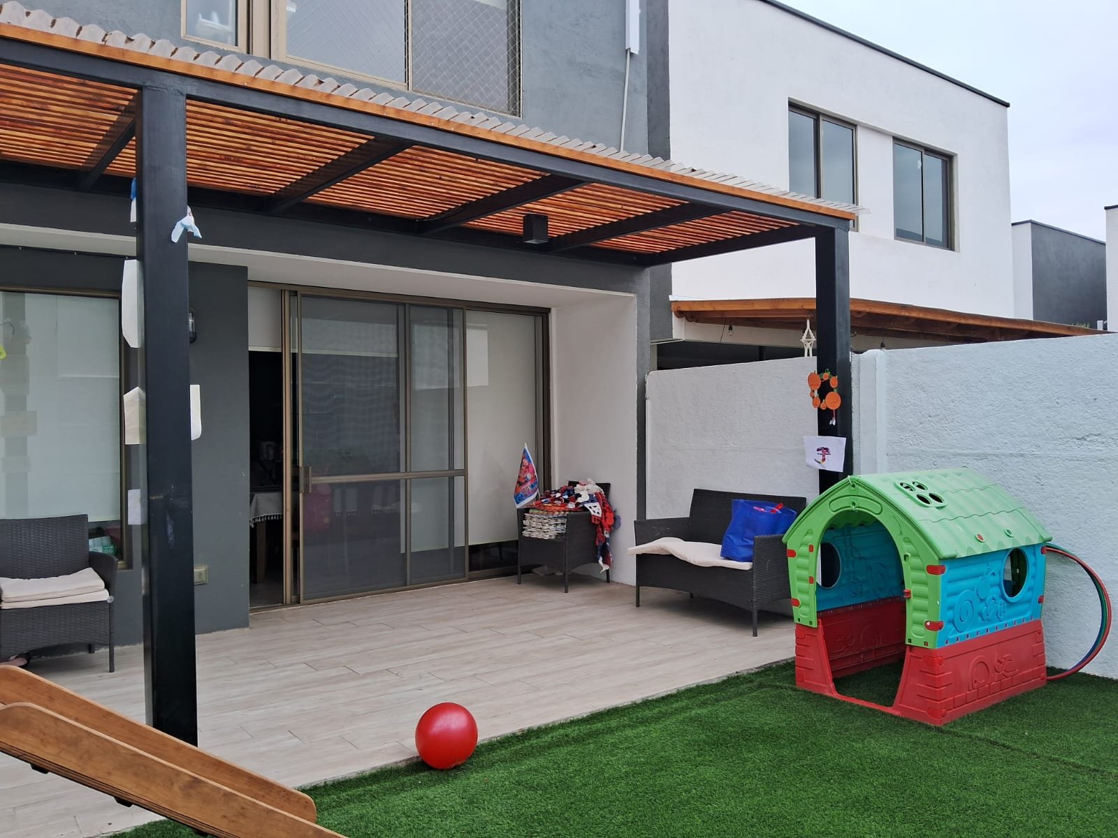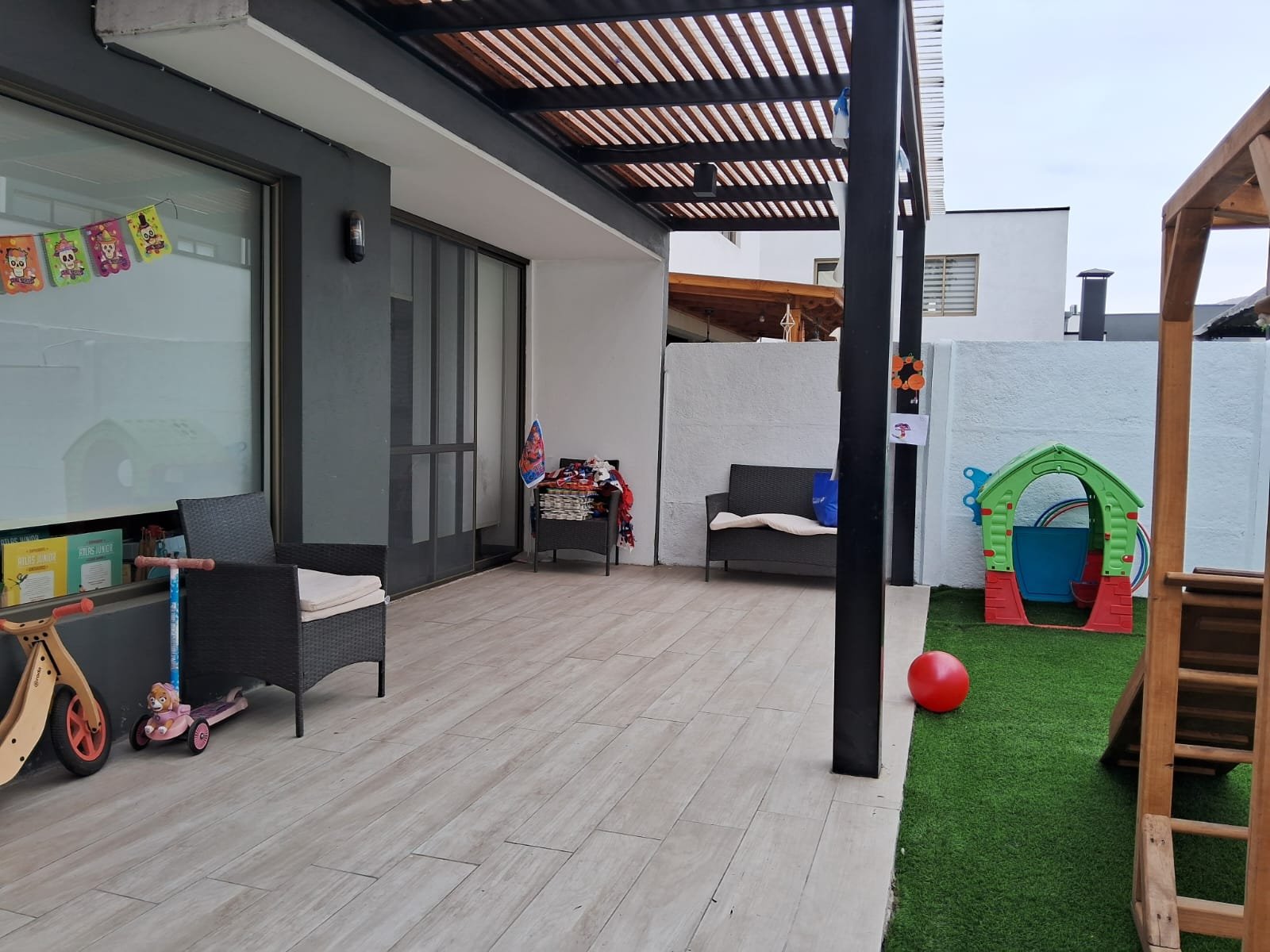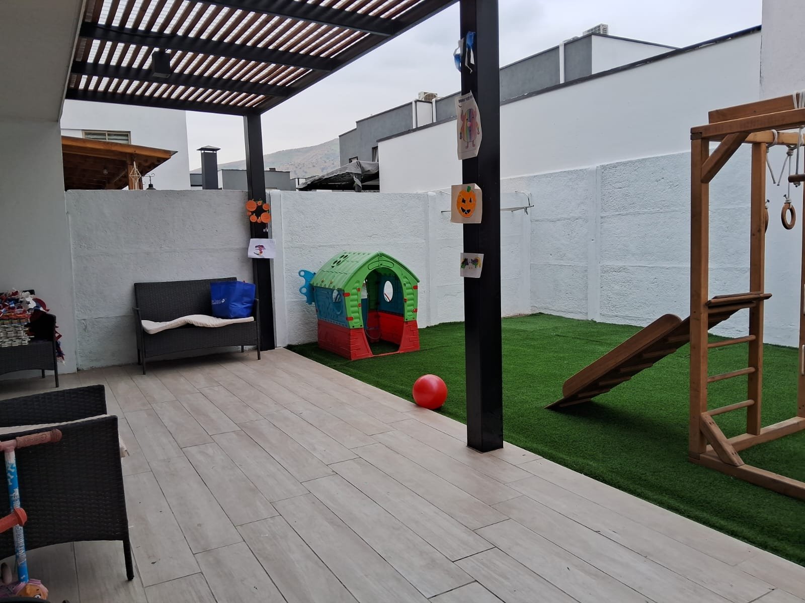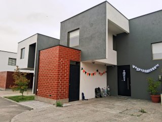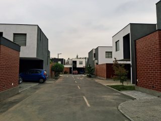 Excelente casa ubicada en condominio, solo dos años de antiguedad. Cercana a jardines infantiles y colegios tales como Pumahue, San Francisco Javier, Saint Joseph, Grace College, Lincoln College. Comercio variado (stripcenter, gimnasio, supermercados, cafeterías y comercio en general). Muy buen acceso a Pedro Fontova y a Américo Vespucio. El condominio cuenta con acceso controlado, sector de juegos infantiles y estacionamiento de visitas. Opción de arrendar con compromiso de compra. La casa se distribuye de la siguiente manera: hall de acceso, baño de visitas, living comedor con amplias ventanas lo que otorga gran amplitud y luminosidad, cocina integrada al comedor y completamente equipada (espacio para refrigerador de dos puertas), loggia cerrada y techada, cuenta con una bodega en entretecho de la loggia Todo el primer piso con piso de porcelanato Segundo piso: habitación principal con baño en suite y walking closet, sala de estar, dos habitaciones y un baño completo (las tres habitaciones con aire acondicionado). Exterior: terraza techada, jardín formado, estacionamiento para dos vehículos. Detalles: calefacción central, cuatro equipos de aire acondicionado. Gastos comunes $100.000. Contribuciones $150.000 trimestral.