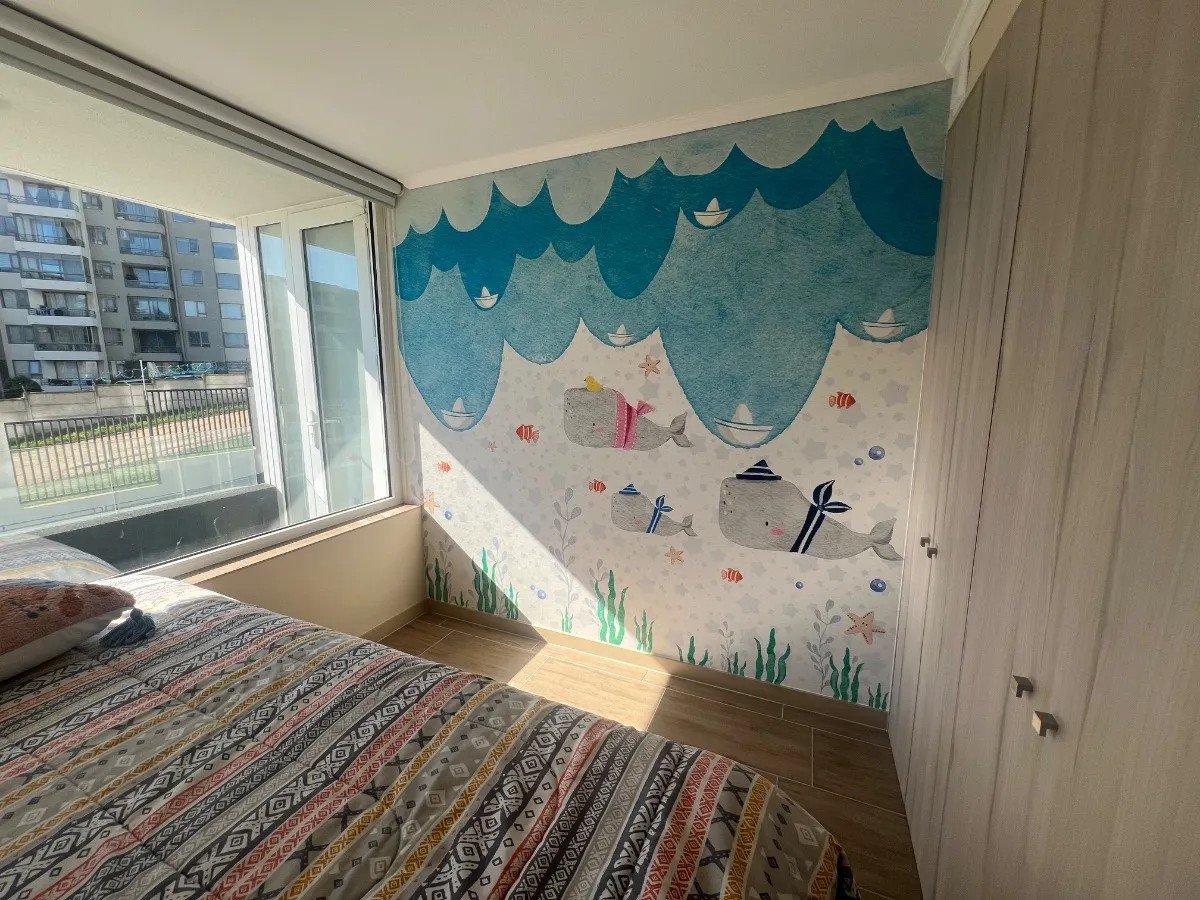 Departamento de tres habitaciones (principal en suite) y tres baños, ubicado en Lomas de San Andrés, excelente estado. Disponible diciembre 2025. Distribución: hall de acceso, baño de visitas, living y comedor, amplia terraza, cocina completamente equipada, loggia. Habitación principal con baño en suite, dos habitaciones y un baño completo. Un estacionamiento y una bodega. Detalles: puertas de acceso modelo Mara enchape madera con cerradura eléctrica de acceso (huella digital, clave numérica, tarjeta, llave seguridad). Ideal para no depender de llaves. Muros con papel mural en recintos secos, sin manchas ni perforaciones, muy bien cuidados, pisos de porcelanato en el 100% del departamento, ventanas con perfiles de PVC y cristales termopanel, vanitorios con mueble en todos los baños. Shower door en baño de dormitorio en suite. Ambas terrazas cerradas con cristales templados plegables y acorde a reglamento de copropiedad, terraza principal con sistema de cortinaje importado de excelente calidad. Cortinaje nuevo y completo en todos los recintos, tipo rollers acorde a reglamento de copropiedad, habilitación eléctrica en loggia para instalaciones de lavadora y secadora en forma de torre. Características del condominio: área de juegos para niños, cierre eléctrico en perímetro, equipo electrógeno en caso de emergencia, lavandería, gimnasio equipado, modernas salas multiusos y quinchos equipados, conserjería 24/7, acceso al condominio y a cada torre con sistema de control de acceso. Gastos comunes $140.000. Requisitos de arriendo: últimas tres liquidaciones de sueldo, certificado cotizaciones AFP, informe Dicom o similar. Mismos requisitos para el aval. Un mes de garantía, mes de arriendo y comisión de corretaje (medio mes de arriendo).Los ingresos de arrendatario y aval deben ser al menos tres veces el valor del arriendo.
