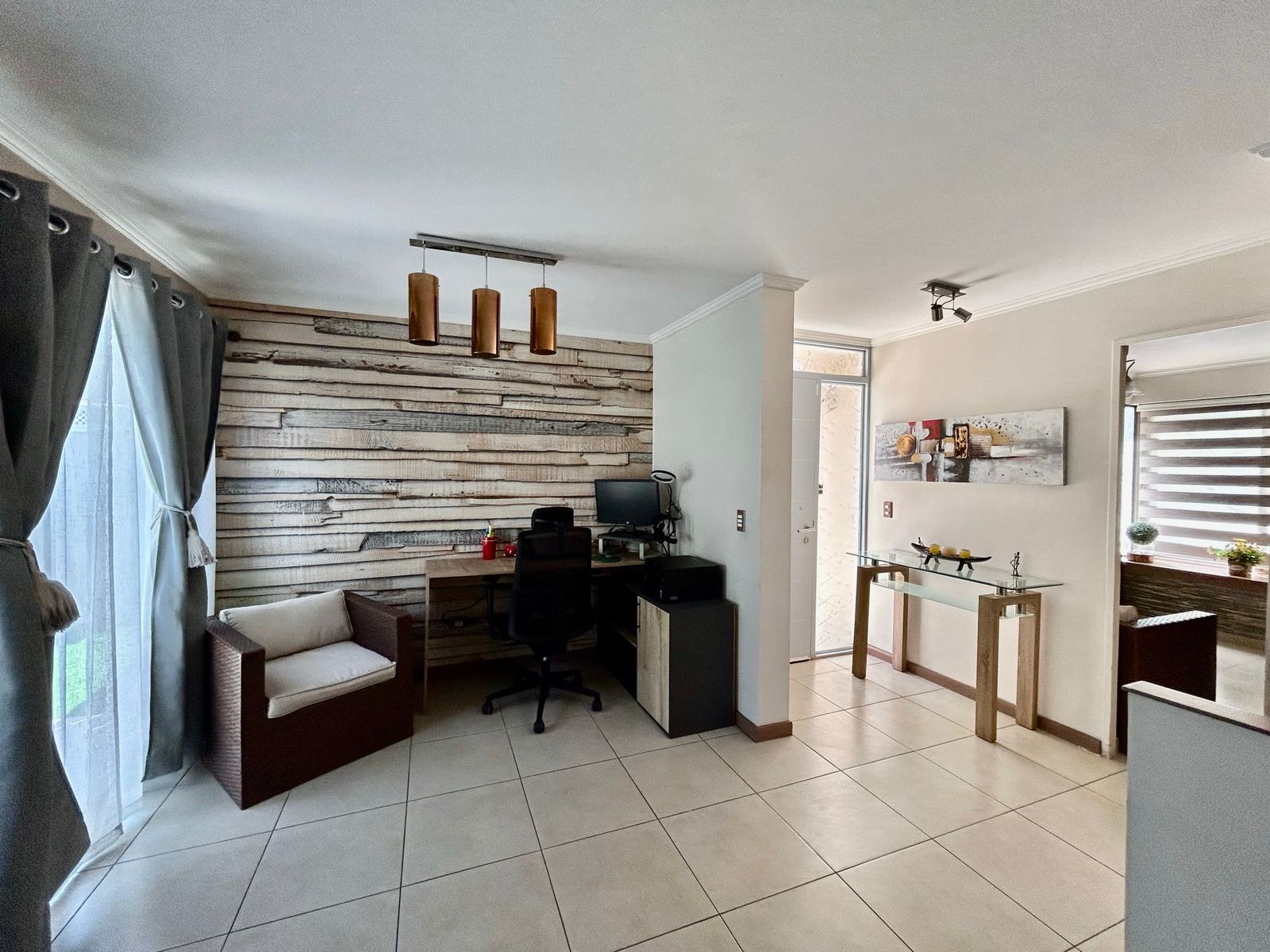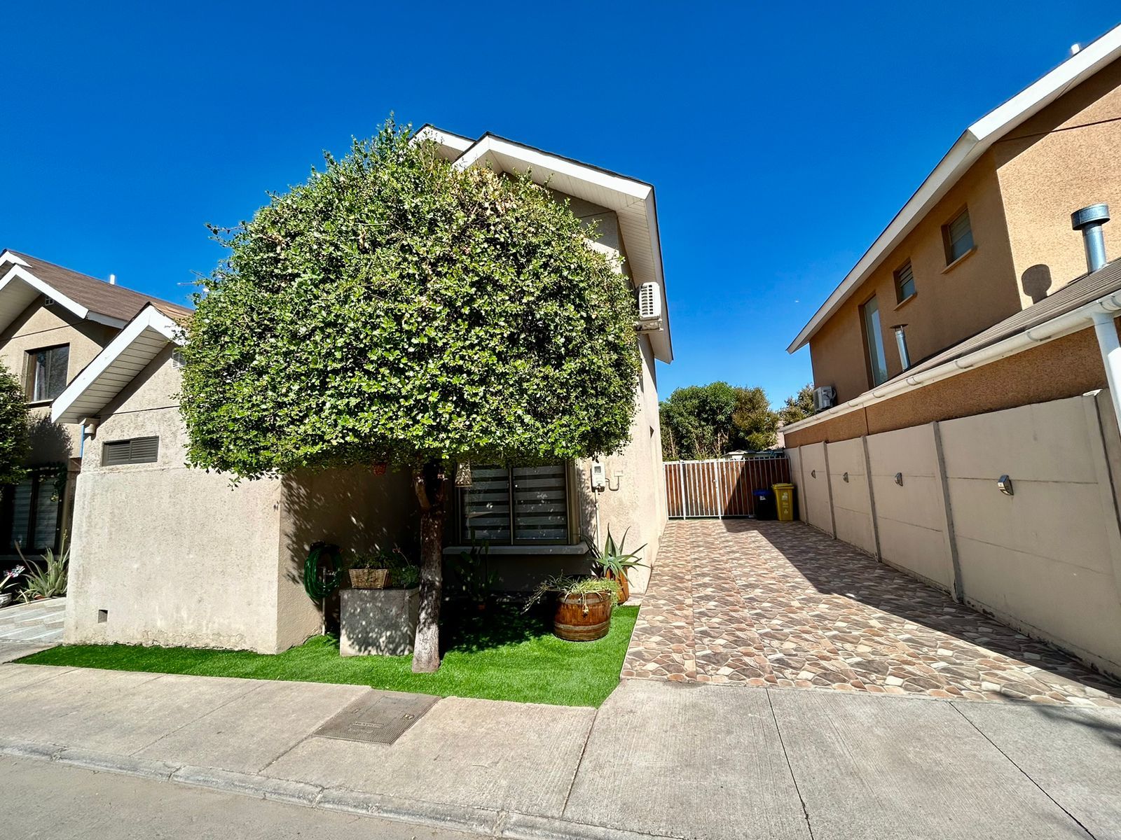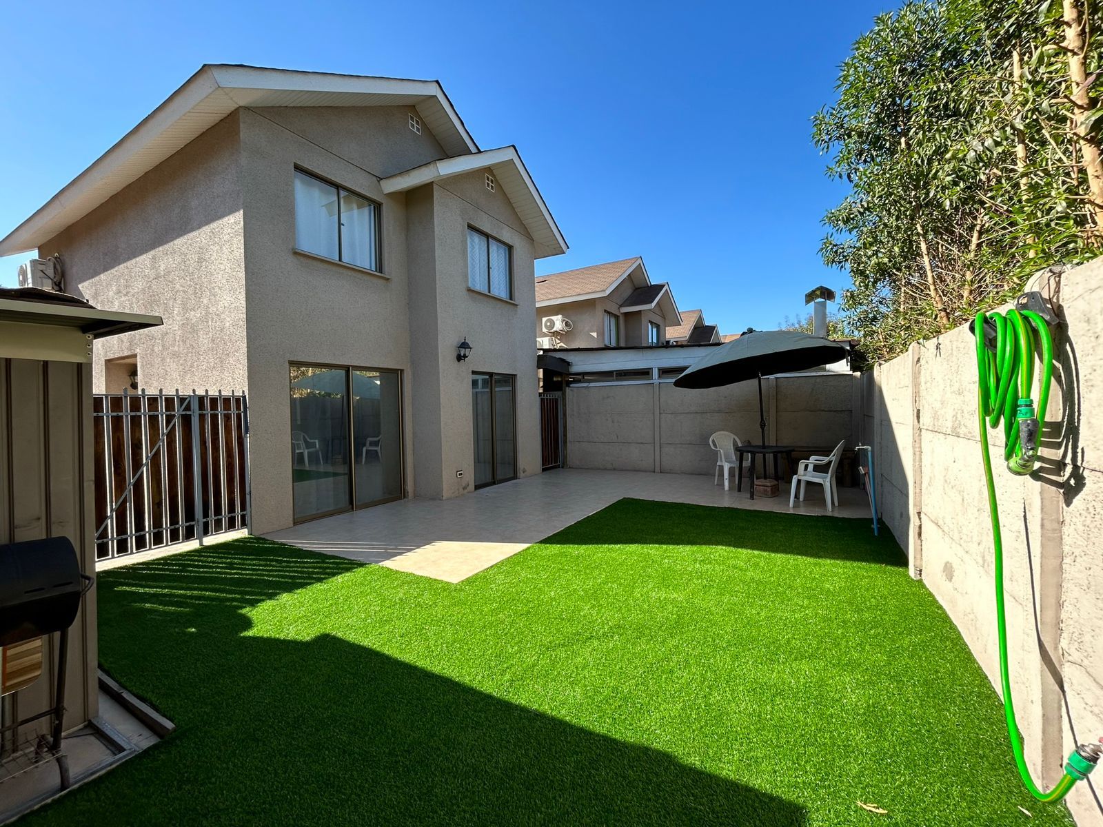 Precio rebajado!! Cómoda casa ubicada en condominio con acceso controlado. Cerca de colegios, supermercados, strip center y comercio en general. Muy buen acceso a Autopista Los Libertadores. No se aceptan mascotas. Disponibilidad inmediata. Distribución: Primer piso: acceso, living-comedor, cocina amplia amoblada, equipada y con family room integrado, loggia cerrada y techada, baño de visitas, bodega. Segundo piso: habitación principal con baño en suite, dos habitaciones y un baño completo. Detalles: aire acondicionado, terraza, estacionamiento para dos vehículos. Gastos comunes: $30.000. El condominio cuenta con accesos controlados, estacionamiento de visitas, juegos infantiles. Requisitos de arriendo: últimas tres liquidaciones de sueldo, certificado cotizaciones AFP, informe Dicom o similar, mismos requisitos para el aval. Un mes y medio de garantía, mes de arriendo y comisión de corretaje (medio mes de arriendo). No se aceptan mascotas.